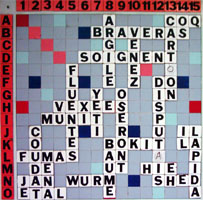 Une partie avec son lot de scrabbles/conjugaison (REPESENT, MANGERAS, LOURDAT) de difficulté plutôt abordable si l'on excepte le joli (L)INOTYPE sur un E posé et trouvé par un trio de joueurs dans la salle.