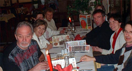 Pour se consoler, une bonne partie des F se sont retrouvés au resto dimanche soir, rien de tel qu'un bon plat (et un bon dessert bien sûr, genre mousse au chocolat au hasard) pour se remettre...d'ailleurs à ce sujet, il est apparu indispensable de renouveler la chose lors des prochains championnats de France...instaurer une tradition de repas final dauphiné-savoie avec apéro offert par le comité par exemple...(t'es d'accord Gégé hein ;-))
