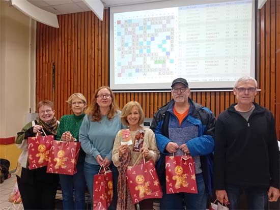 En ce qui concerne l'agréable, enfin... je l'espère pour tous ceux qui ont joué les parties, ce sont nos dames qui se sont distinguées : Gisèle Rondot (Valence, 1ère), Isabelle Leydier et Joëlle Pech (Rumilly, 2ème et 4ème), Sylvie Gelineau (La Côte St-André, 3ème) et Nicole Counotte (Aix, 5ème). Bravo !